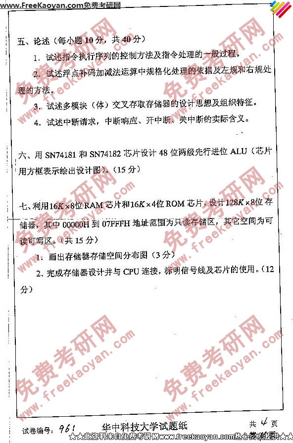 华中科技大学2007年考研真题-计算机组成原理961(4)