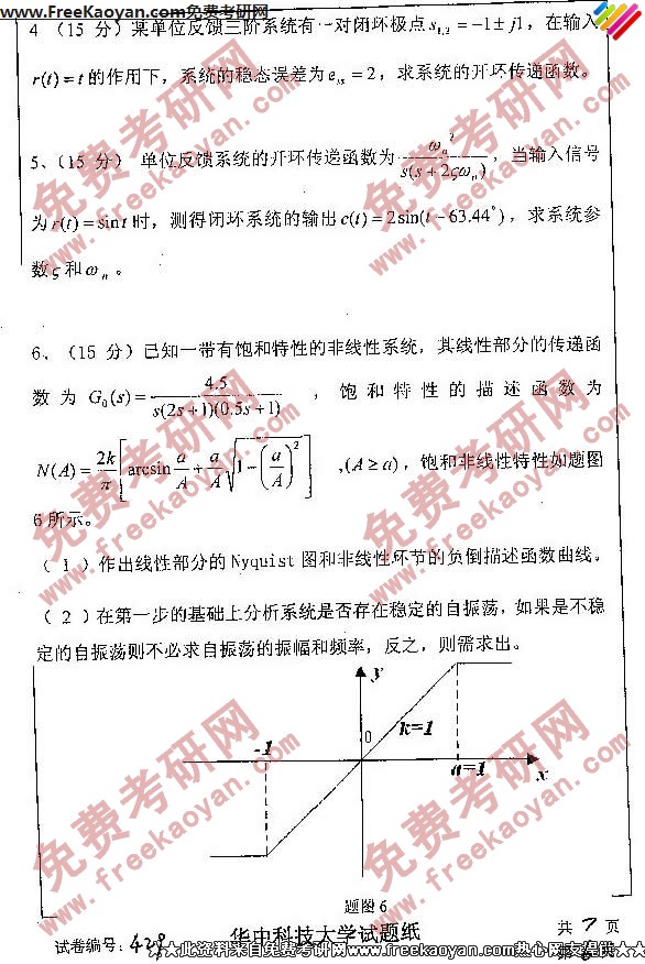 专业课考研经验 本站小编 FreeKaoyan 2018-01-23华中科技大学2007年考研真题-信号与线性系统