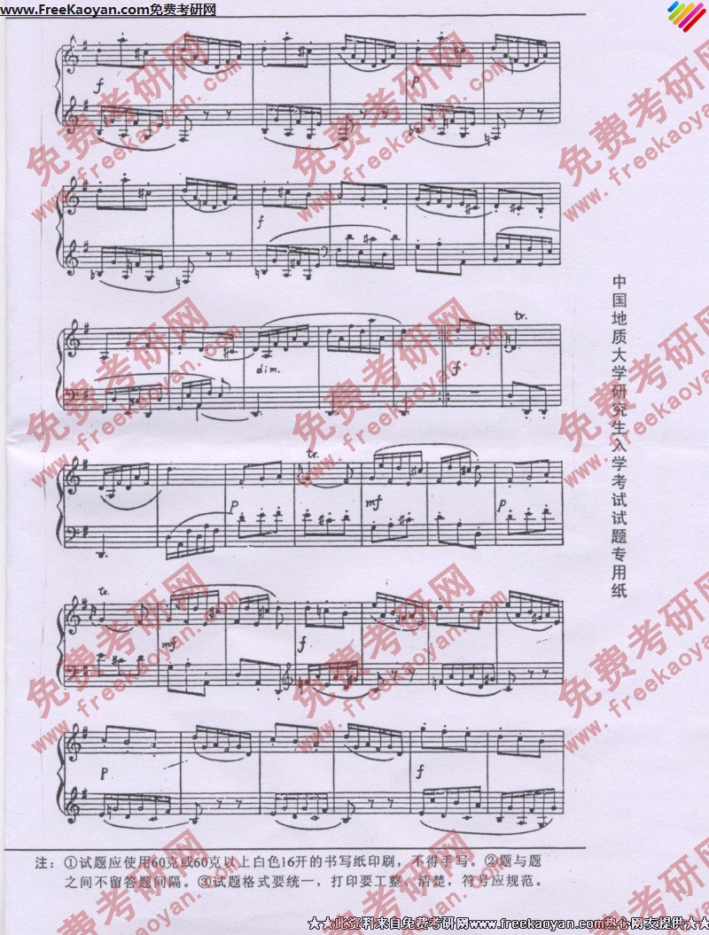 中国地质大学(武汉)2007年考研真题-曲式与作品分析(8)