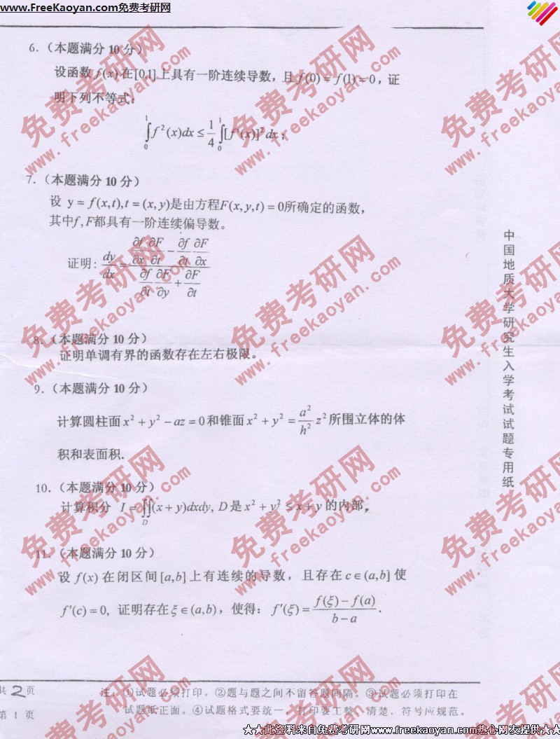 中国地质大学(武汉)2007年考研真题-数学分析(2)