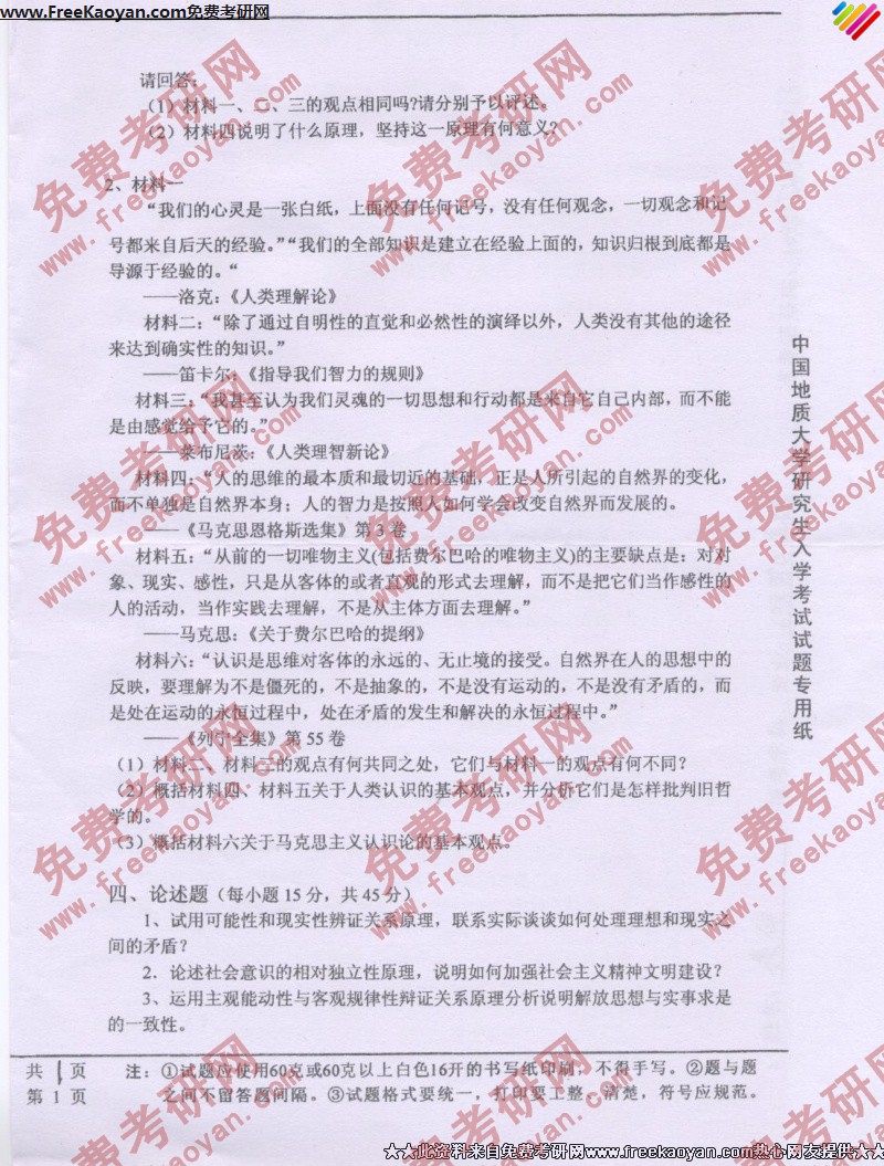 中国地质大学(武汉)2007年考研真题-哲学基础(2)