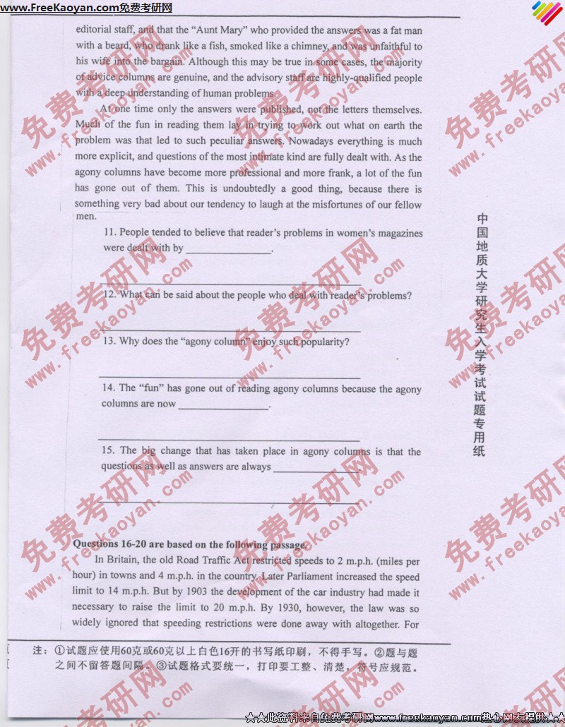 专业课考研经验 本站小编 FreeKaoyan 2018-01-23中国地质大学(武汉)2007年考研真题-英语语言文学基础