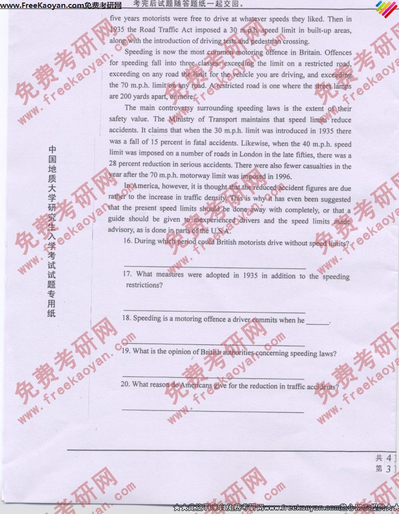 专业课考研经验 本站小编 FreeKaoyan 2018-01-23中国地质大学(武汉)2007年考研真题-英语语言文学基础