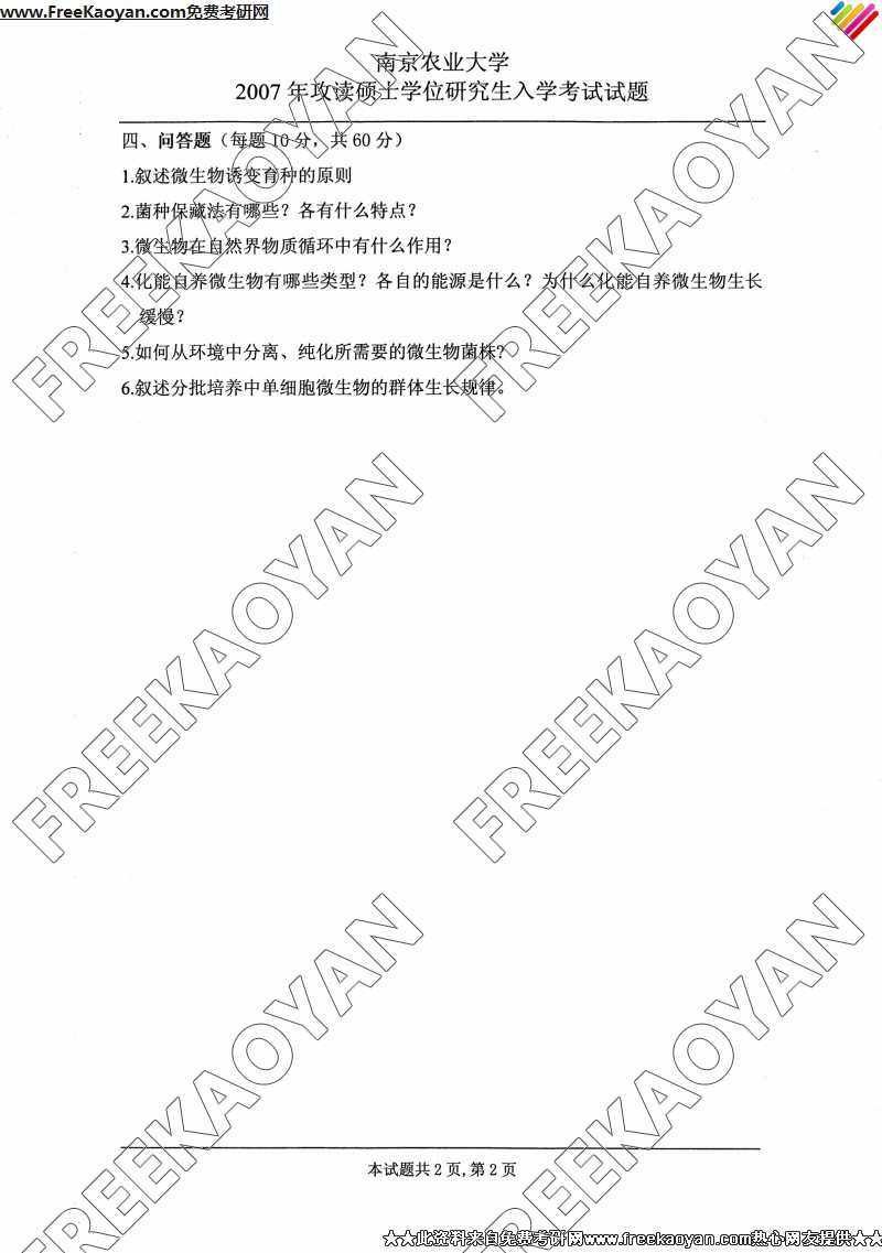 专业课考研经验 本站小编 FreeKaoyan 2018-01-23南京农业大学2007年考研真题-农业生态学