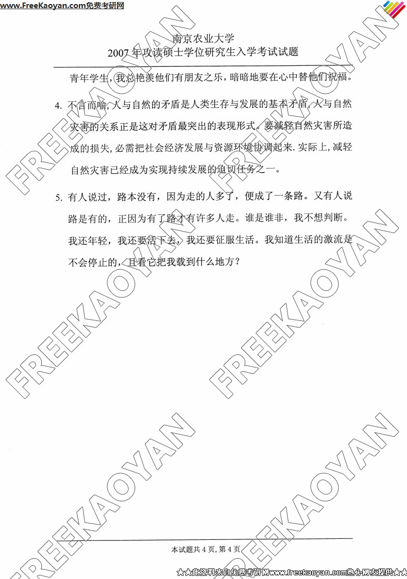 专业课考研经验 本站小编 FreeKaoyan 2018-01-23南京农业大学2007年考研真题-现代思想政治教育研究