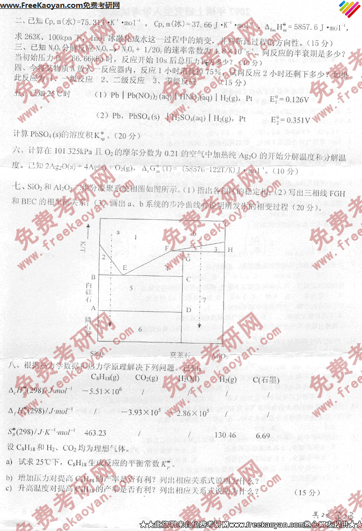 燕山大学2007年考研真题-物理化学(2)