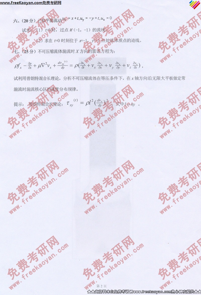 相关话题/河北工业大学 考研真题 流体力学