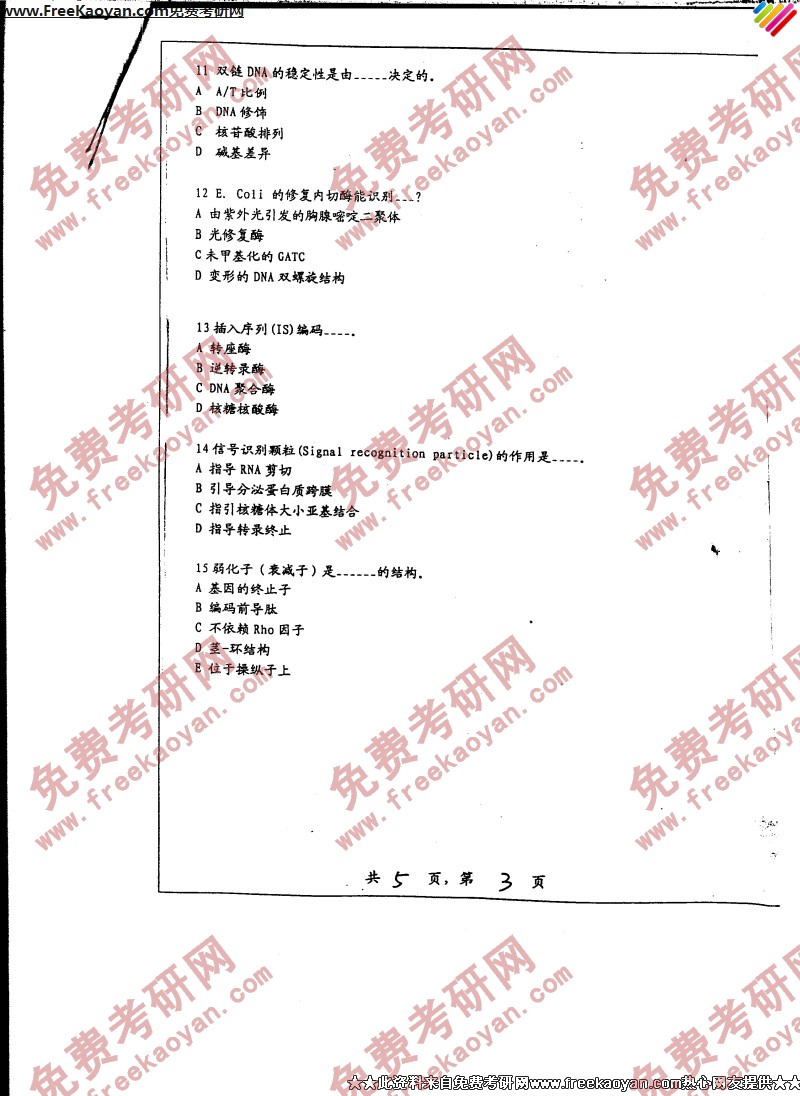 专业课考研经验 本站小编 FreeKaoyan 2018-01-23上海交通大学2006年考研真题-分子生物学