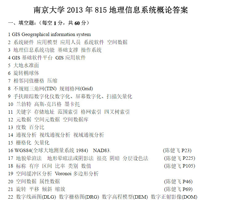 1984北京地理坐标系统、1980西安地理坐标系统、1984WGS、R-树索引、TIN、线条简化和平滑的意义和方法、RGB、HSV、CMLK 、颜色模型、有效性原则、植被区域、地理道路编码、数字化过程