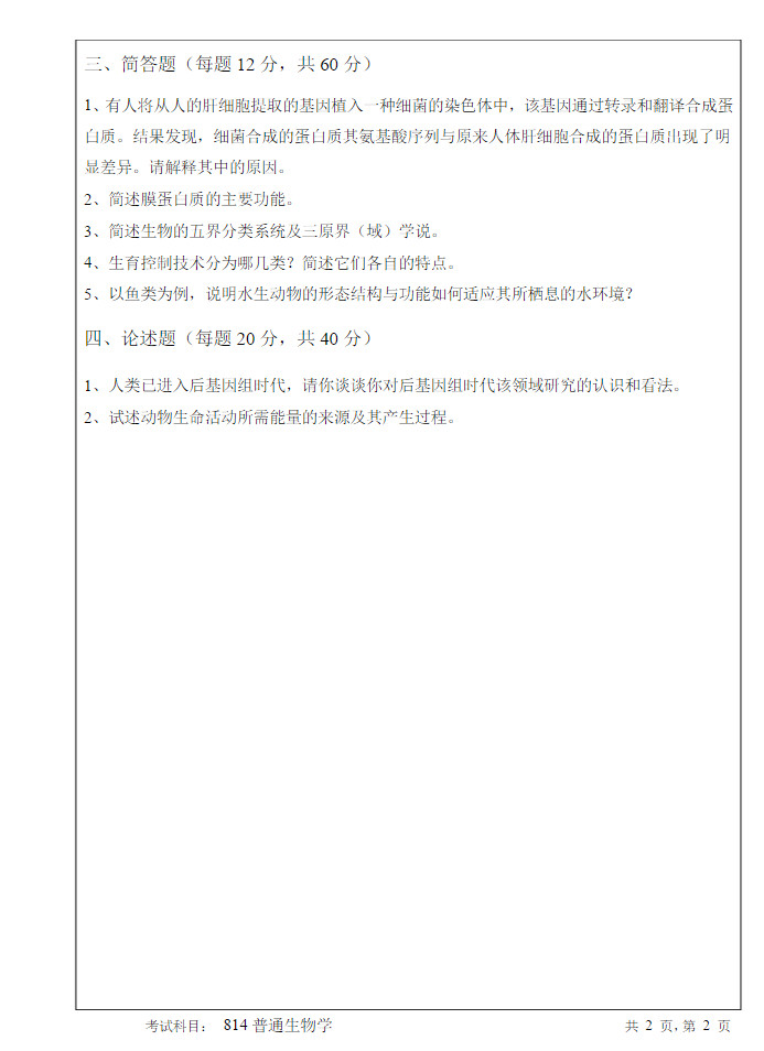 2006年攻读硕士学位研究生入学考试试题__普通生物学
