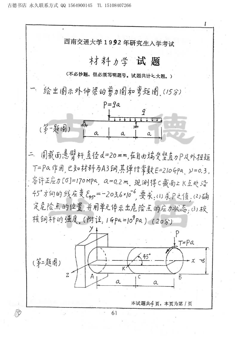 西南交通大学1986-1999年材料力学考研真题(35)