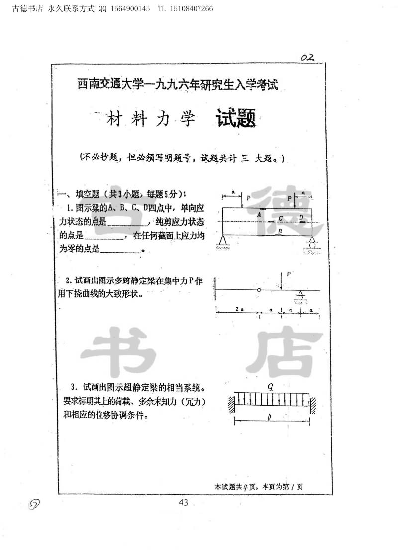 西南交通大学1986-1999年材料力学考研真题(46)