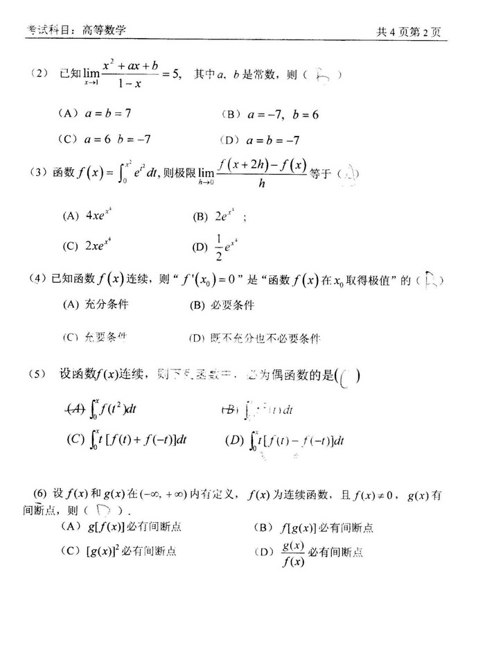 专业课考研资料 本站小编 网络资源 2015-07-14西南交通大学2006高等数学考研真题