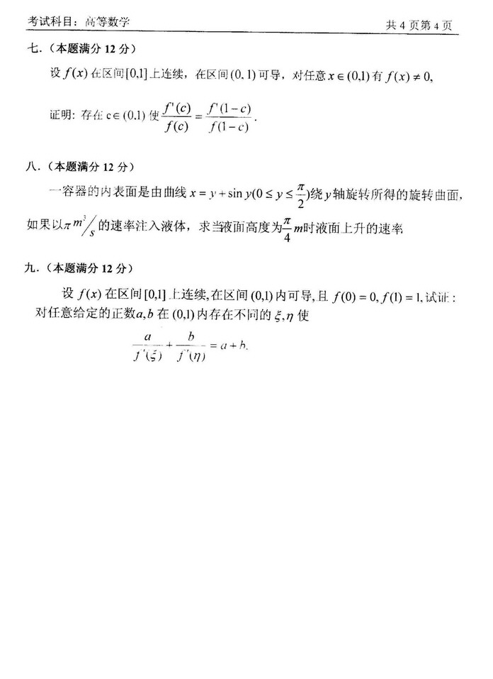中国石油大学北京2007高等数学考研真题(4)