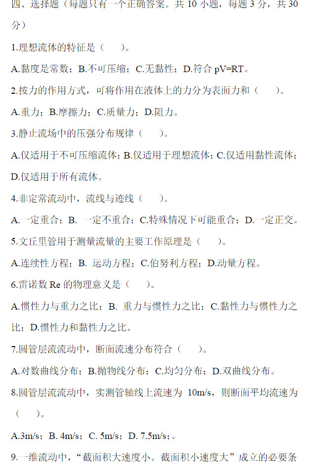 图为:09年哈工大工程流体力学考研真题解析 ...