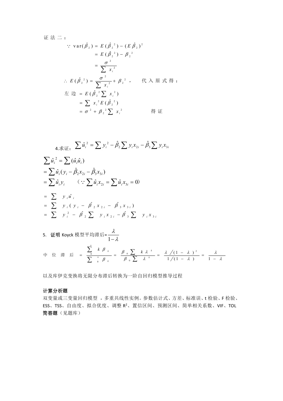 • 山西财经大学2016年计量经济学期末考试复习重点