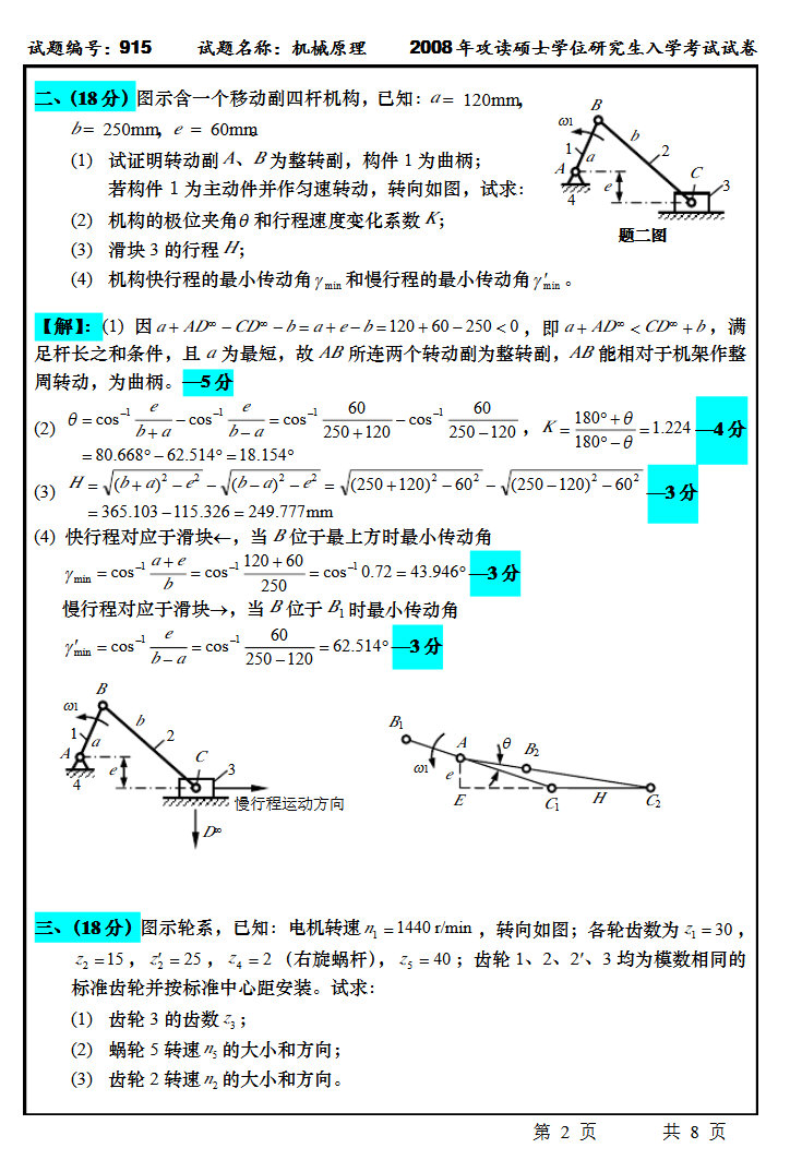 专业课考研资料 本站小编 免费考研网 2018-08-242016年合肥工业大学机械原理考研真题回忆