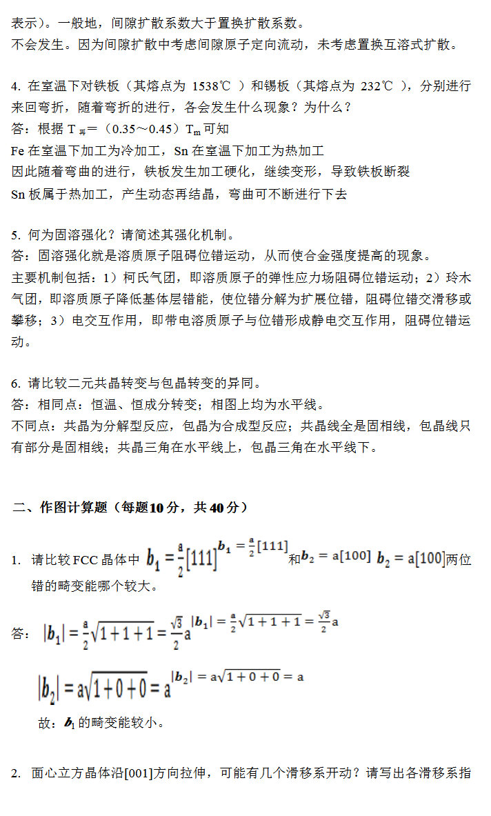 西北工业大学2008-2011材料科学基础考研试题与答案(6)