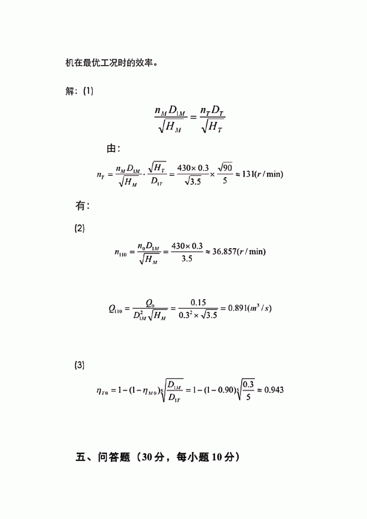 河海大学水轮机考研及期末考试复习真题(16)