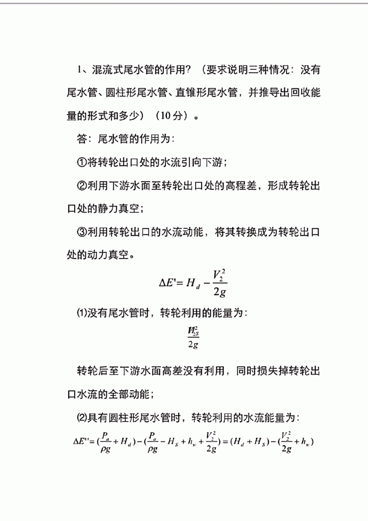 河海大学水轮机考研及期末考试复习真题(17)