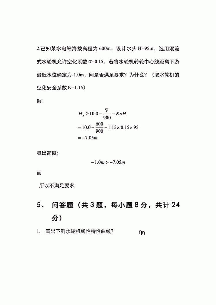 河海大学水轮机考研及期末考试复习真题(28)