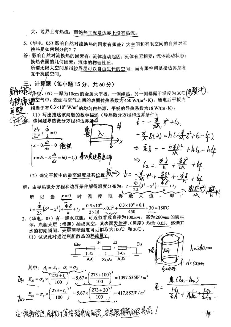 华北电力大学传热学考研真题解答答案(2002-2008,2016)(14)