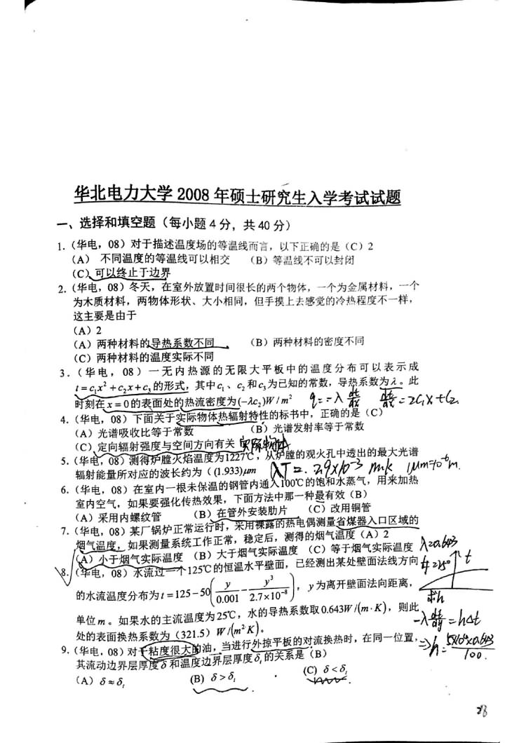 华北电力大学传热学考研真题解答答案(2002-2008,2016)(28)