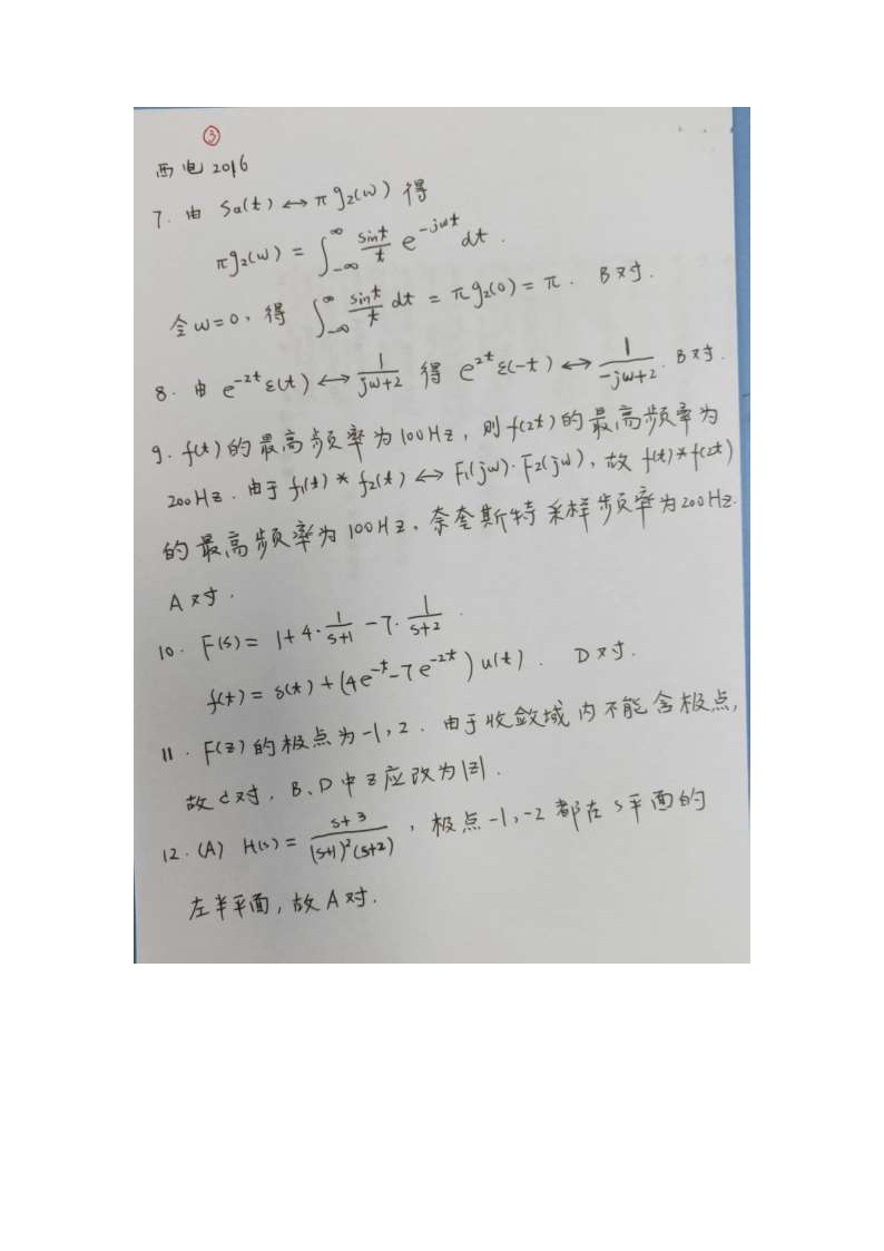 2016西安电子科技大学考研信号与系统试题答案全解全析(8)