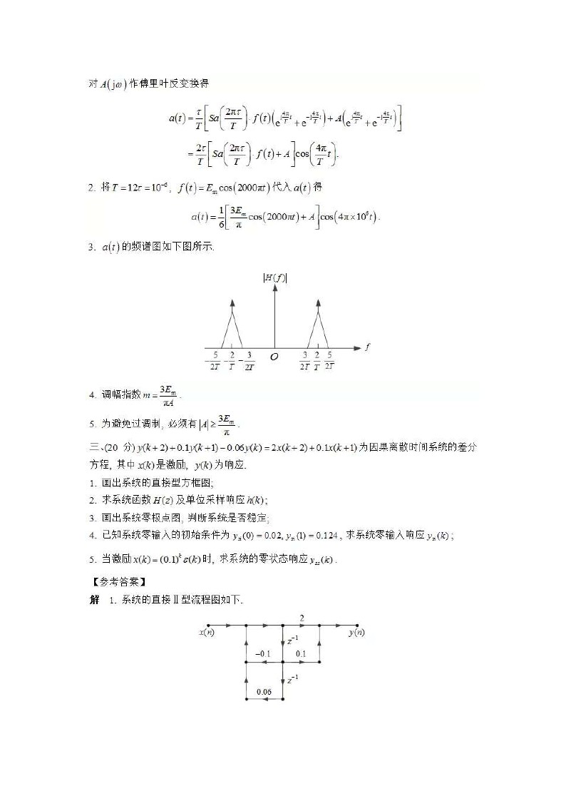 2014南京航空航天大学考研信号系统初试试题答案全解全析(6)