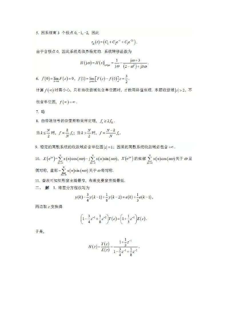 2015南京航空航天大学考研信号系统初试试题答案全解全析(6)