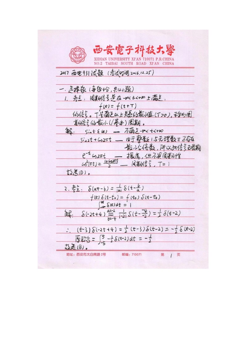 2017西安电子科技大学信号与线性系统931考研真题答案解析(5)