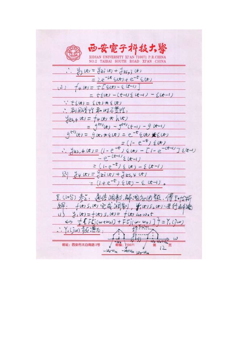 西安电子科技大学2018信号与系统821考研试题与详解(15)