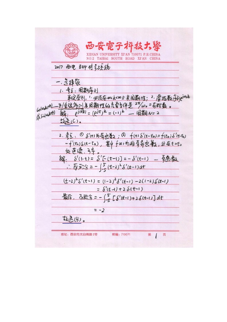 2017西安电子科技大学考研信号与系统844真题答案解析(5)