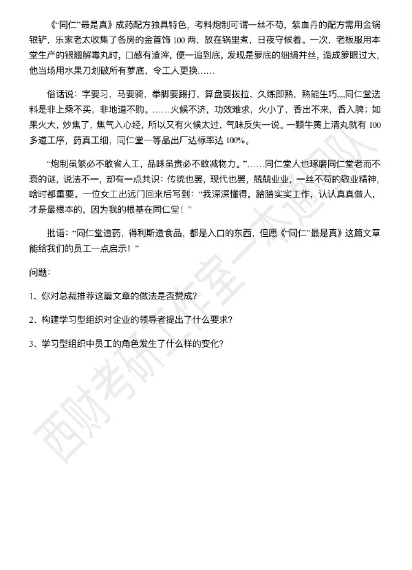 西南财经大学管理学一本通2019考前预测六套卷(图文)(39)