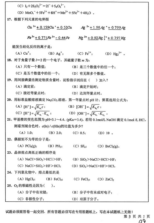 2009年中国矿业大学无机与分析化学考试真题(3)