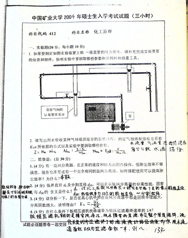 专业课考研资料 本站小编 免费考研网 2019-12-14中国矿业大学2005-2006化工原理试卷带详细答案