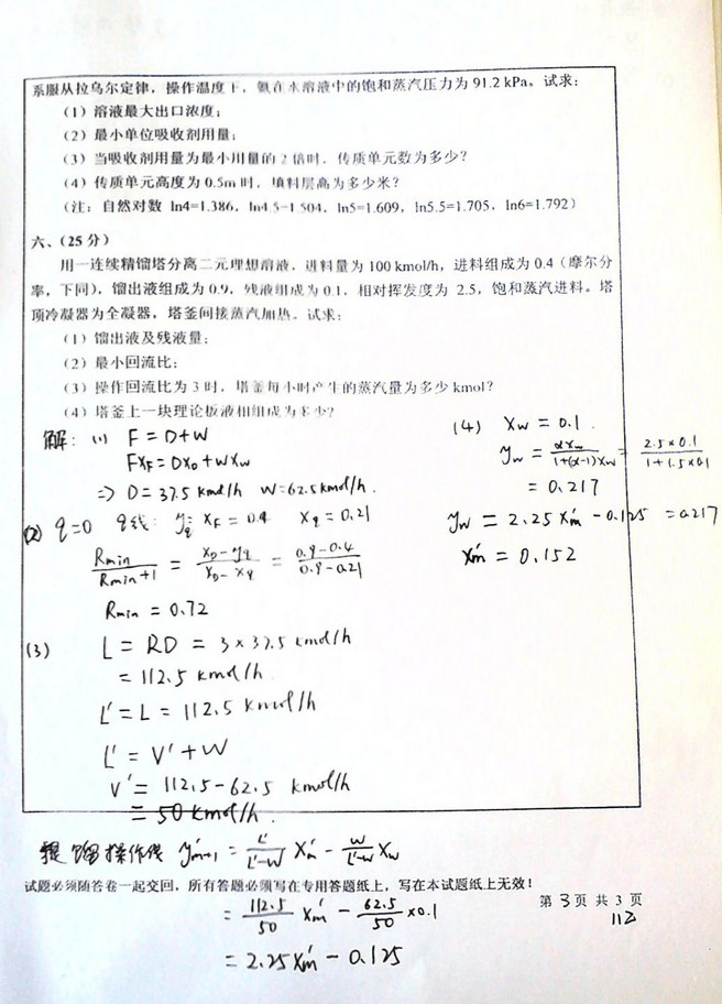 专业课考研资料 本站小编 免费考研网 2019-12-14中国矿业大学2006-2007年化工原理试卷带详细答案