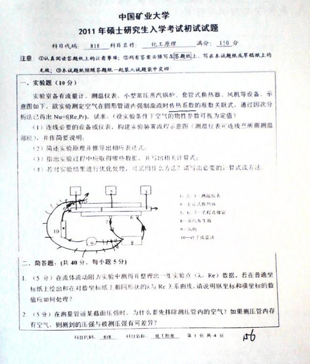 专业课考研资料 本站小编 免费考研网 2019-12-14中国矿业大学2005-2006化工原理试卷带详细答案