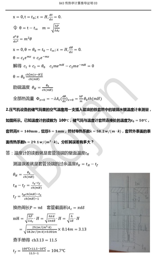 大连理工大学843传热学考研历年真题汇总分类——计算推导证明(12)