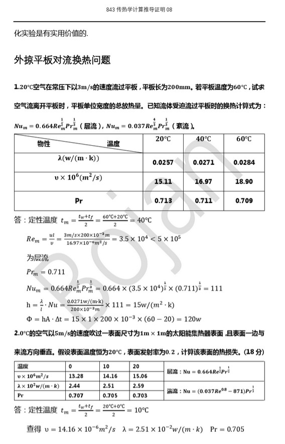 大连理工大学843传热学考研历年真题汇总分类——计算推导证明(31)
