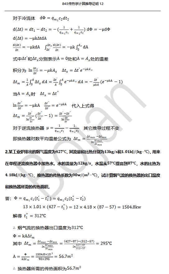 大连理工大学843传热学考研历年真题汇总分类——计算推导证明(49)
