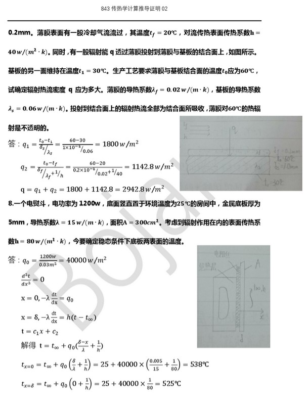 大连理工大学843传热学考研历年真题汇总分类——计算推导证明(8)
