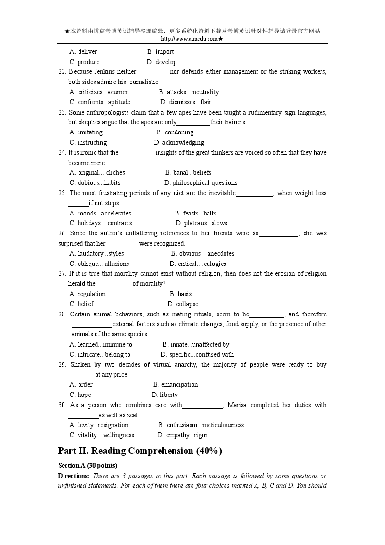 厦门大学2010-2011,2014考博英语真题及答案(15)