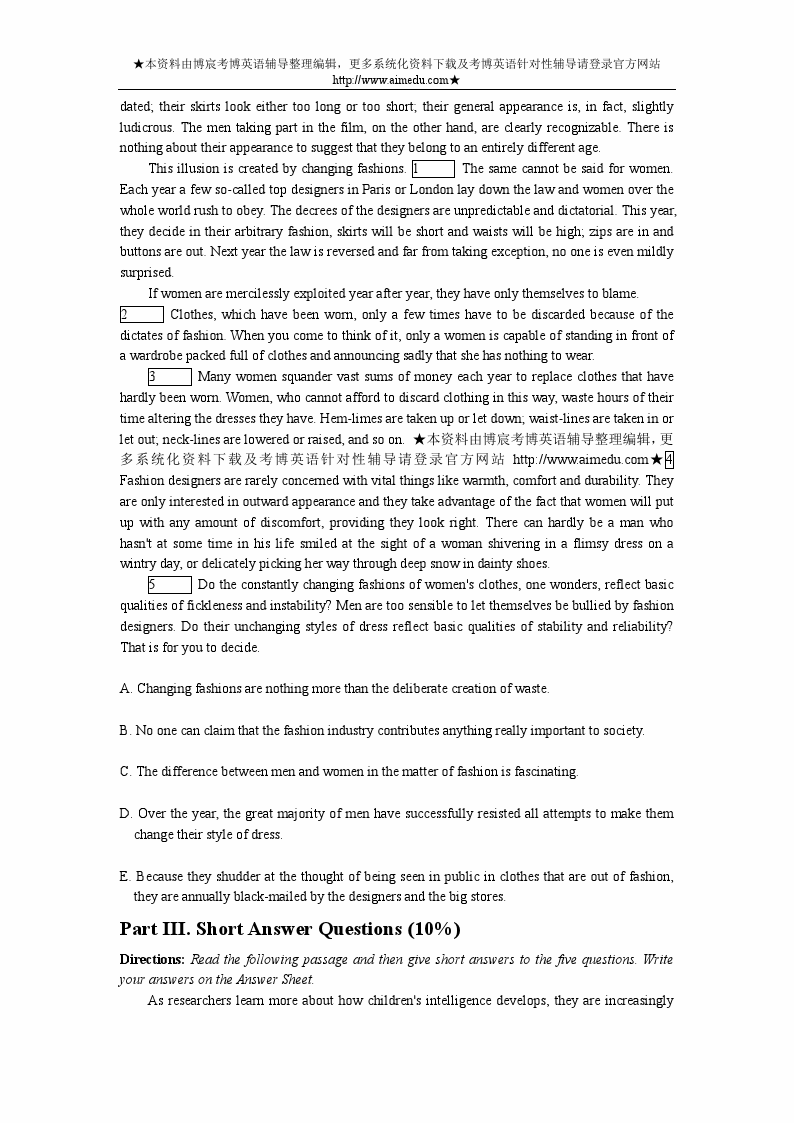 厦门大学2010-2011,2014考博英语真题及答案(21)