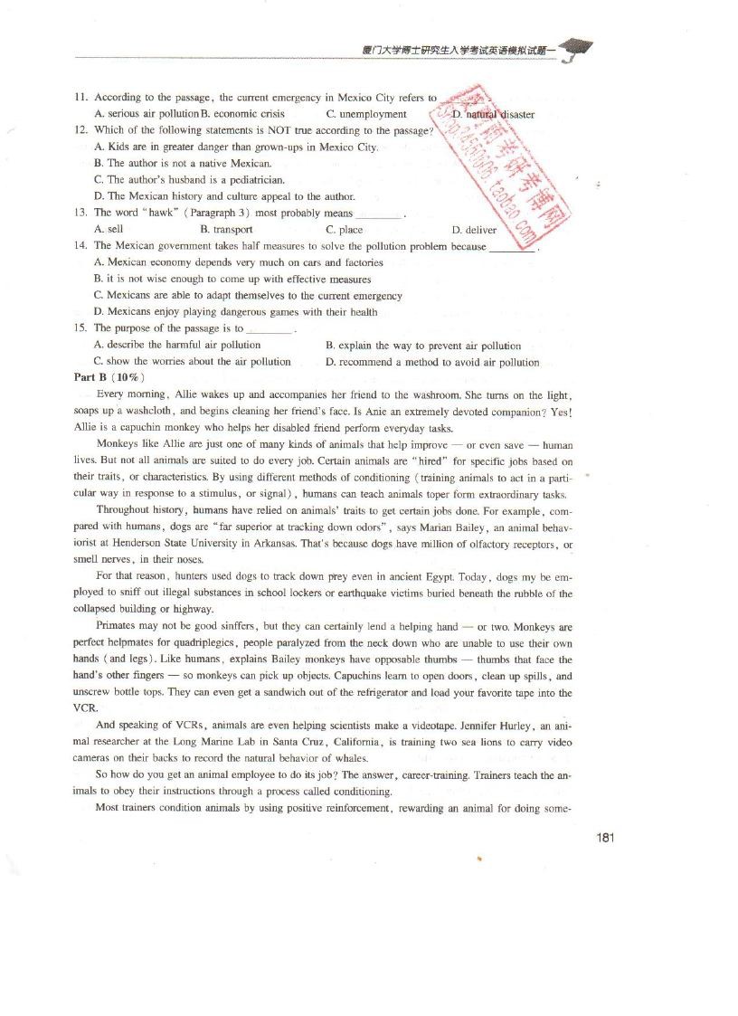 厦门大学2010-2011,2014考博英语真题及答案(26)