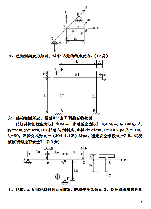 材料力学考研真题十一套 汇集各个高校经典材料力学试题(5)