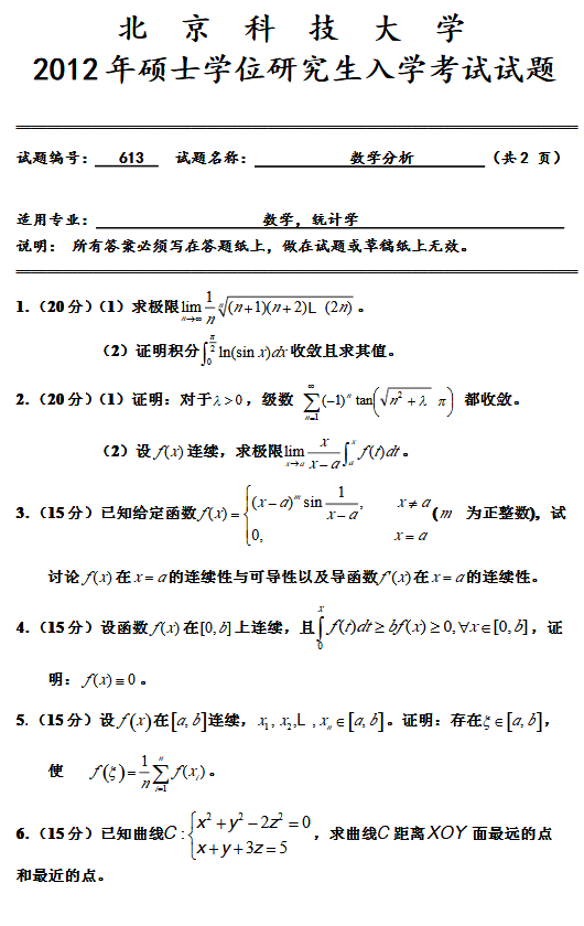 北京科技大学2003-2014考研数学分析真题(5)