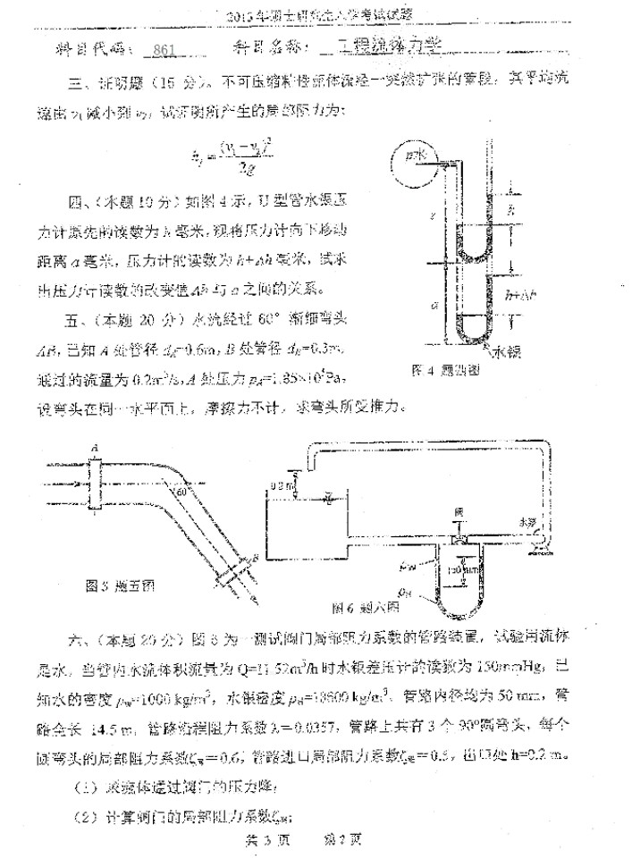 西北工业大学2011-2015年861工程流体力学考研真题(8)