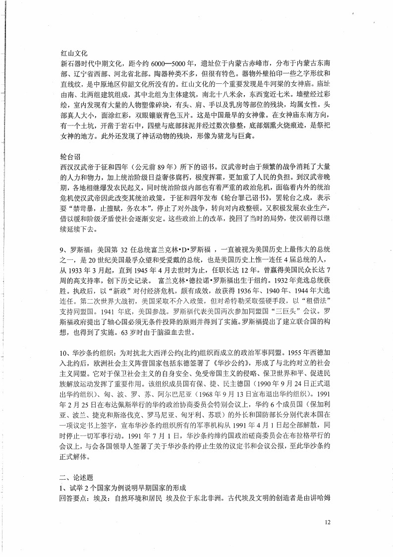 2001-2012年北京师范大学历史学所有专业综合考研真题及部分答案(12)