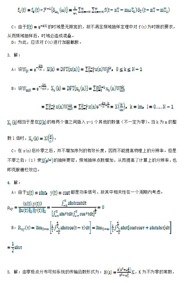 中国科技大学843信号与系统考研模拟题一带详细答案(5)